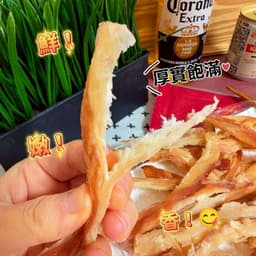 阿根廷深海手撕大魷魚乾✅優質原料:嚴選來自阿根廷深海的大魷魚,肉質厚實飽滿,軟Q彈牙、厚切紮實😋✅獨特工藝:採用高低溫烘烤技術,讓魷魚條不乾硬,保留Q彈口感,越嚼越香😍✅營養價值:魷魚本身具有高蛋白、低脂肪、富含鈣、磷、鐵等營養健康💪不管是零食、消夜、配茶酒、當下酒菜、追劇都合適😍來自阿根廷深海,新鮮打撈上岸直接製成100%純天然,無污染,不添加色素,不使用魚漿混合👍多汁鮮甜就像吃到現捕的魷魚,滿滿的海洋風味,讓人忍不住一口接一口😋